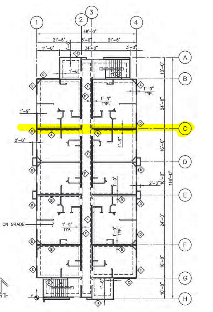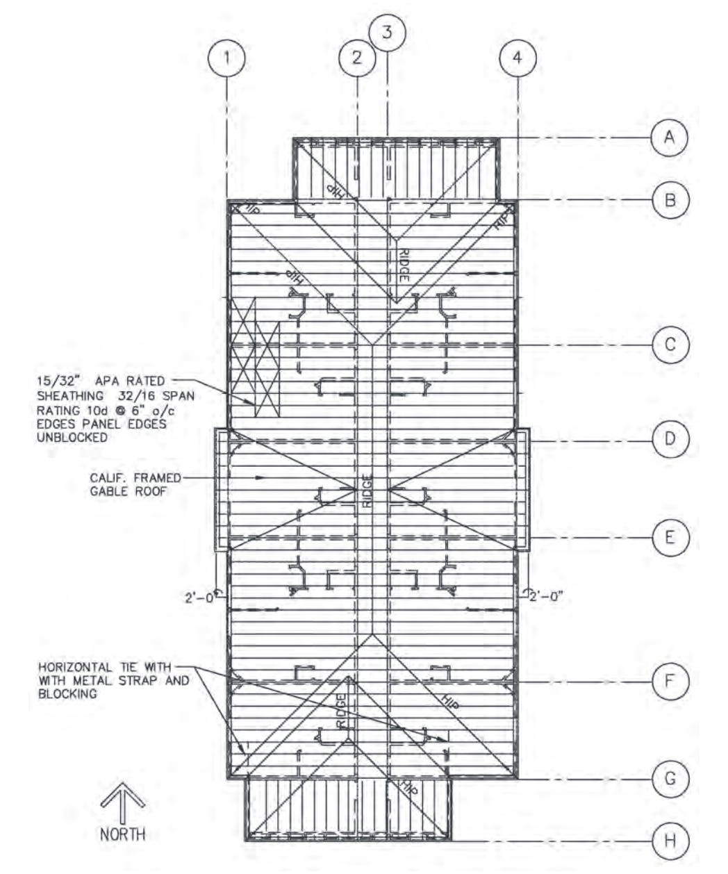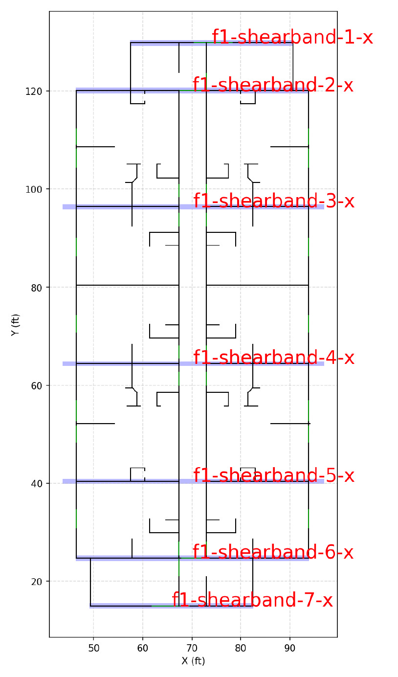 In SEAOC design, the following shear band/shear line layout is adopted: