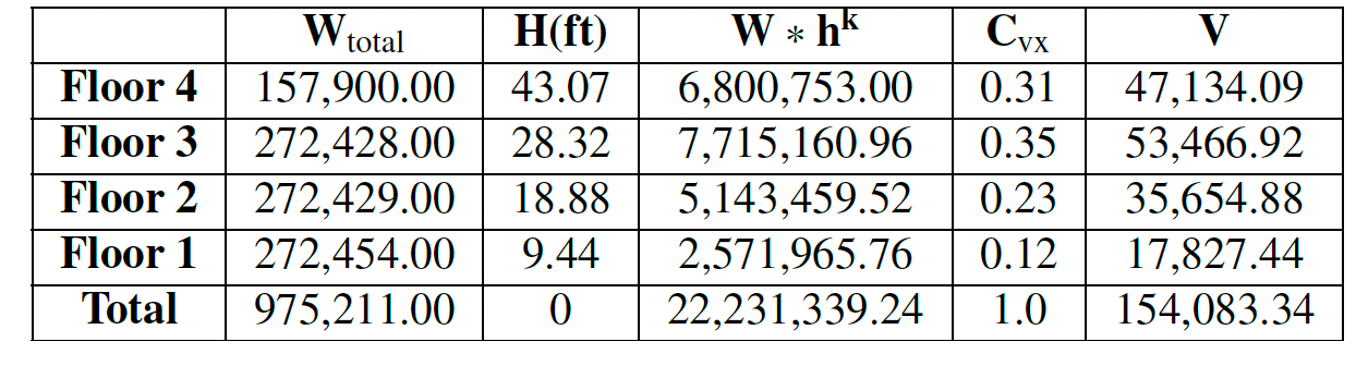 In SEAOC manual, the vertical shear distribution across four floors is as following: